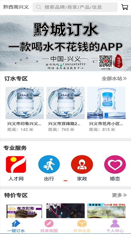 黔城订水是一个在线预订饮用水的服务应用软件,黔城订水App集多功能为一体,为本地用户提供了各类共享经济服务,可在线预订饮用水、美食等,还可以发布各类信息。