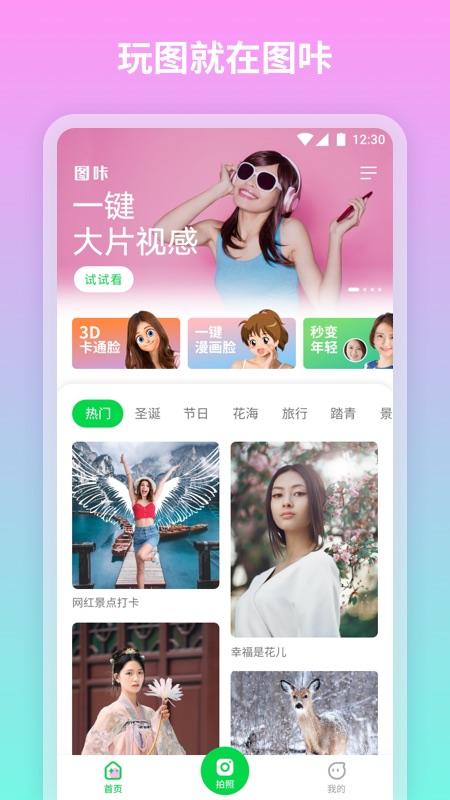 来图咔,让照片变得更有趣!图片编辑也可以如此简单易用,借助AI帮您轻松一键成片!通过人像换背景,任何照片都能变得妙趣横生!内置超多精美模板,还有相框、滤镜等丰富功能,让您的照片细节满满~