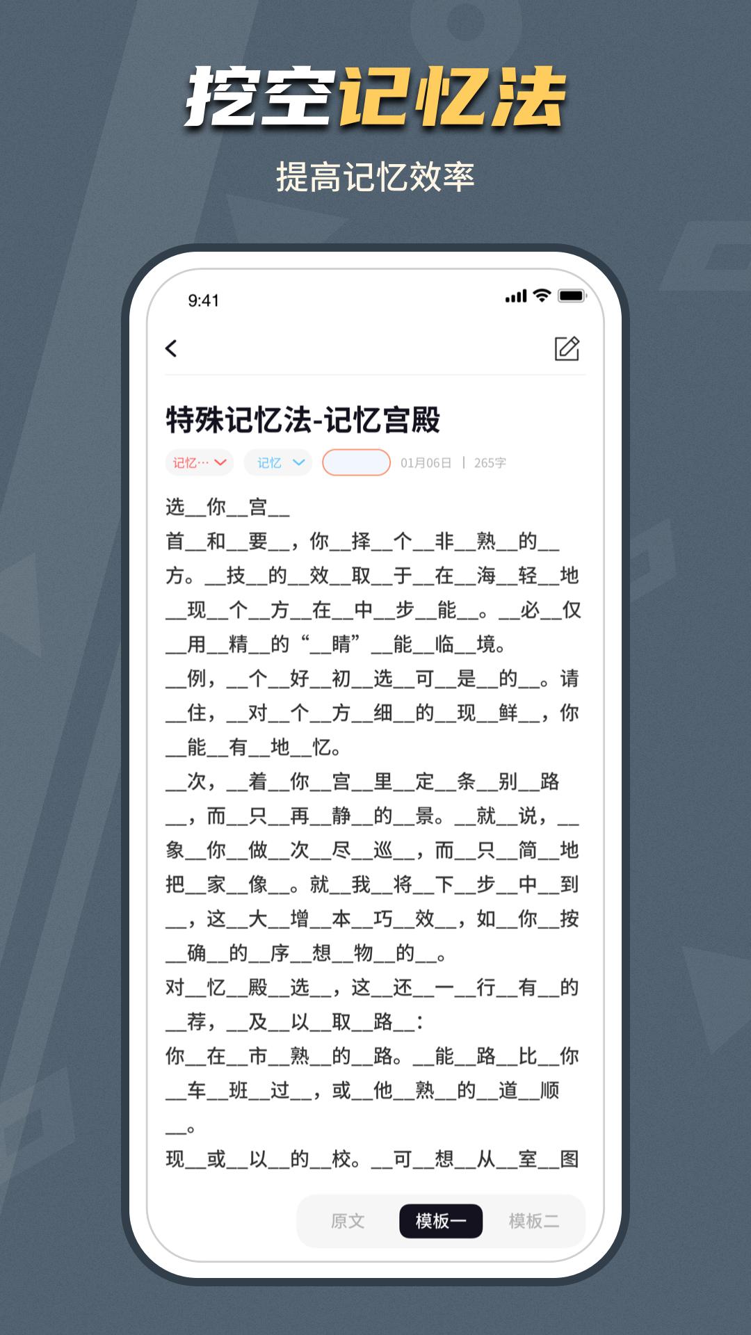 我们今天的主人公------我们把它成为“网格记忆法”,它就独辟蹊径-----通过隔字取空的方式对我们的记忆过程建立起考验,不会造成记忆过程的时间浪费,也不至于会陷入有口无心的记忆状态。