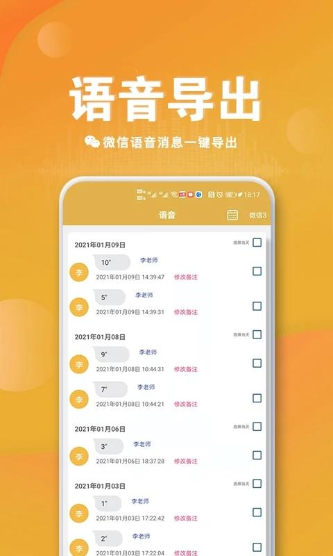 【微信语音导出】将多条微信语音合并为一个单独的MP3文件,然后可以分享到微信或保存在手机。支持各种微商课程语音、网课语音、销售话术等一键导出保存分享,语音合并导出让工作学习更加方便。