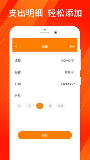 2.分类开支:用户可根据消费的种类分类记账,衣、食、住、行消费情况清晰明了;