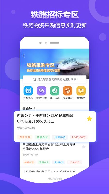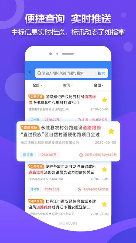 【更新迅速 节省流量】招标和采购信息24小时实时更新,一次性推送,节省流量。