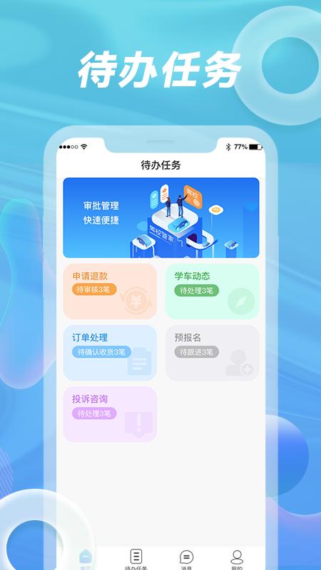 浙里学车驾校版是为驾校提供的一款移动办公软件,驾校工作人员可随时随地在手机上对驾校日常事务进行管理。可查询通过浙里学车学员APP预报名记录、已报名记录,资金管理等。