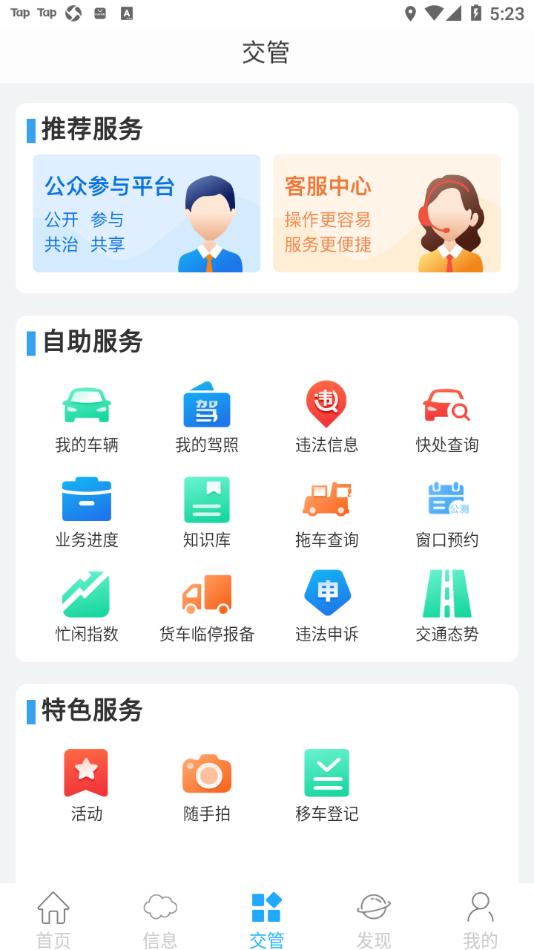 目前已实现:交通违法预警推送、交管业务告知信息推送、交通违法查询、驾驶人信息查询、车辆信息查询、考试预约及考试成绩查询、知识库等二十余项功能。