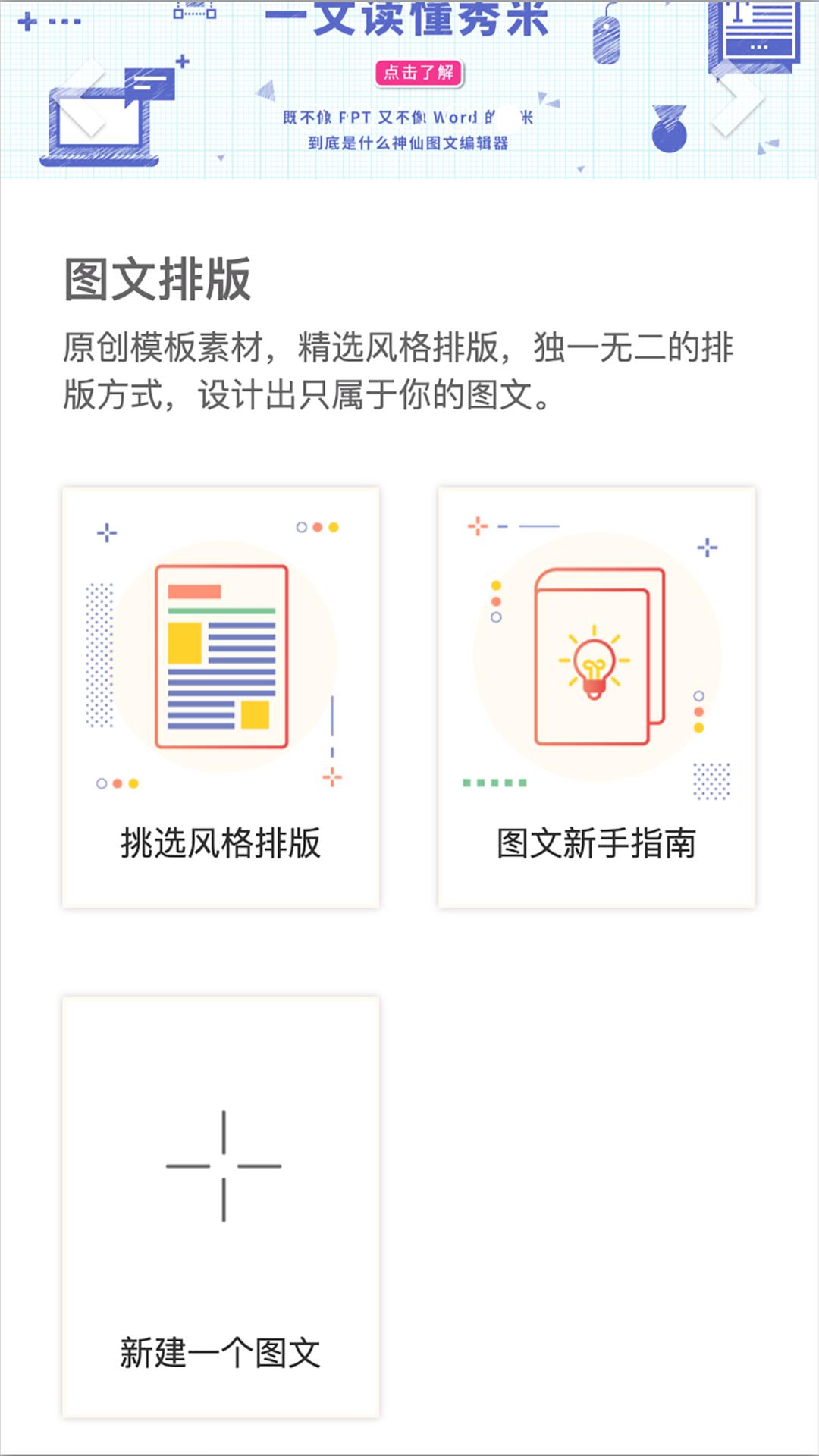 秀米XIUMI app是专为XIUMI网站用户制作,软件可以帮助用户手机修改图文,可以一键排版,可以预览分享,可以管理账号等等,需要的朋友欢迎前来下载使用。