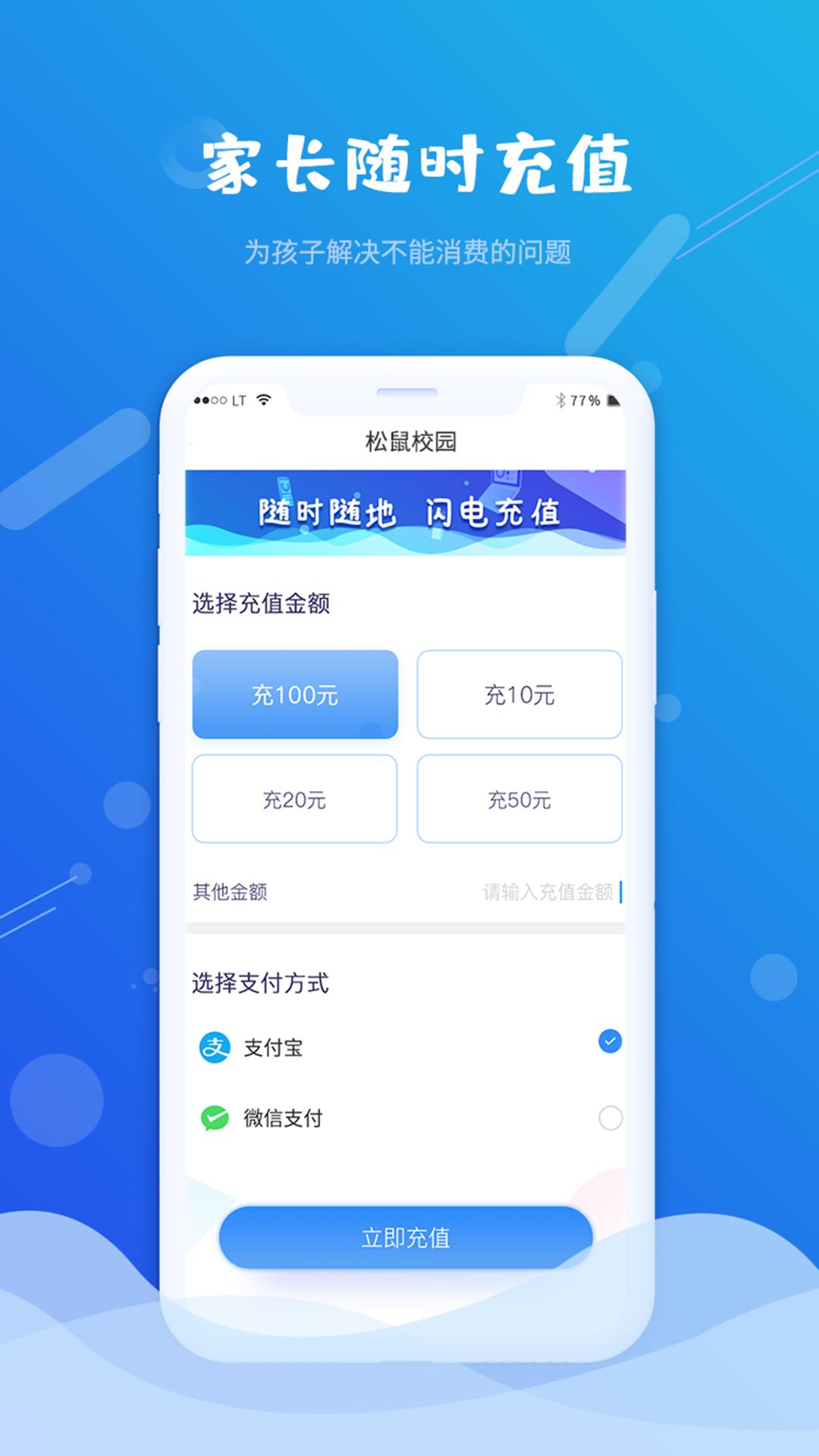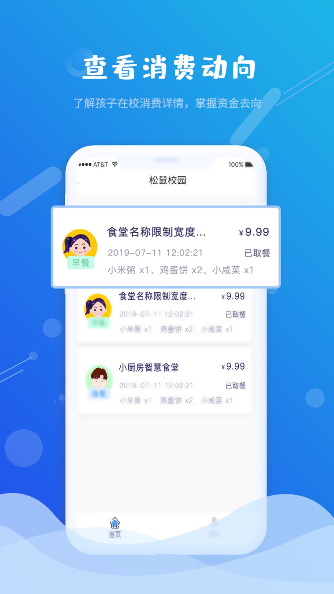松鼠校园手机移动app,是一款应用于中小学场景的家校互动平台,家长在松鼠校园APP上传孩子照片后,可提前帮孩子订餐,孩子在食堂档口刷脸就餐。家长可实时查看孩子在校的消费记录,同时可远程为账户进行充值,家长通过云监控查看学校食堂环境,让孩子吃的健康让家长更放心。