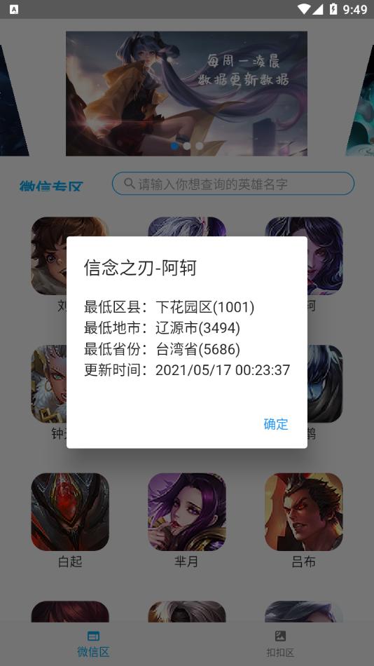 2、可以获得相关的省市地区信息,王者荣耀战力助手每周一都会更新最新数据;