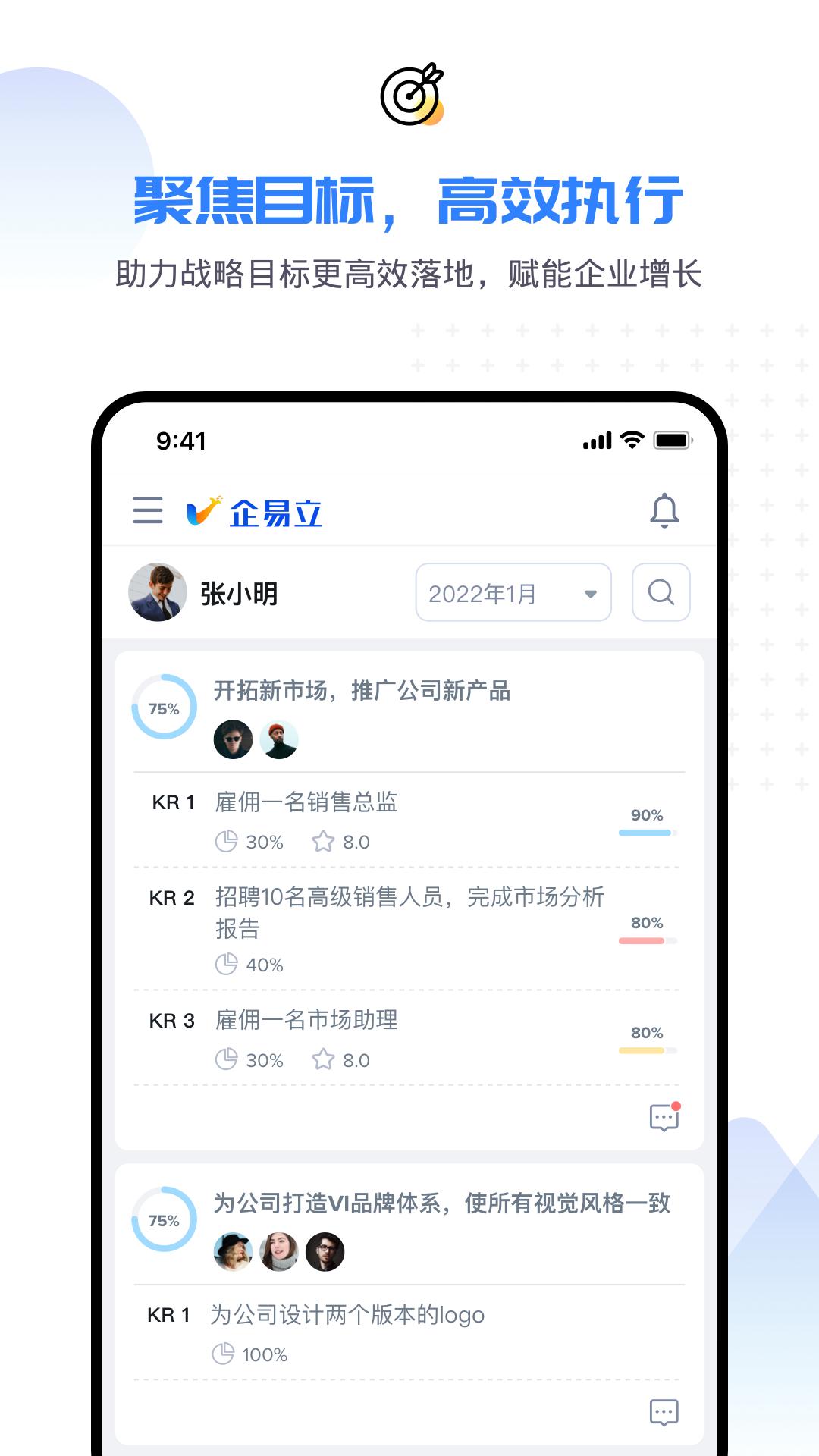 企易立app是一款十分实用的OKR管理平台。软件为用户提供了多种效率办公工具,给用户的生活和工作带来高效的体验感,各种数据有效的糅合,能够让用户签单快人一步,展业更无忧,你更加轻松的提升个人业绩,完成各种的kpi考核。