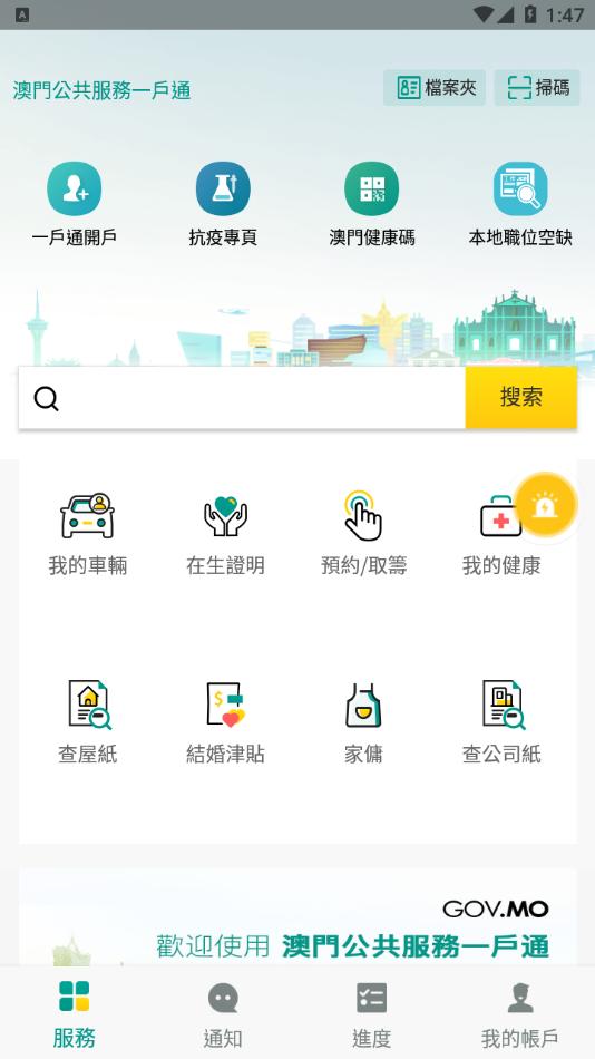 澳门公共服务一户通app是专为澳门制作,软件拥有丰富的功能及服务,可以帮助用户更好的澳门生活,觉得不错的朋友欢迎前来下载使用。