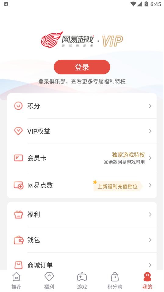 网易游戏会员app是专为网易游戏玩家制作,软件拥有推荐,福利,游戏,积分购,我的等功能板块,可以给予用户更好的游戏体验,需要的朋友欢迎前来下载使用。