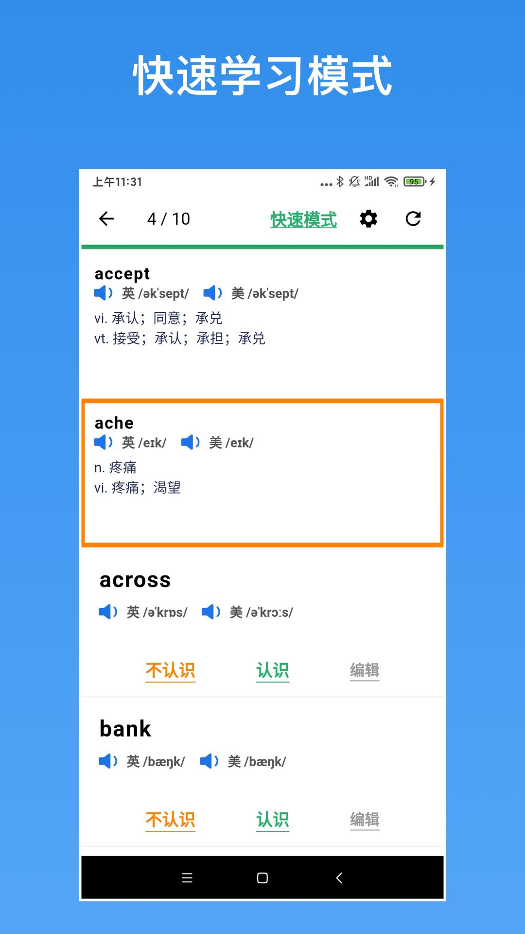 * 「快速学习模式」:快速学习单词的简洁模式。