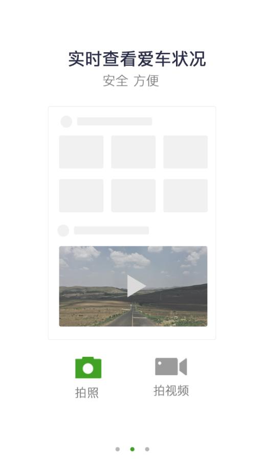 具备设备管理、车辆实时定位、行驶轨迹、实时拍摄、违章查询、罚单缴费、爱车年检、车辆美容、维修保养等功能。