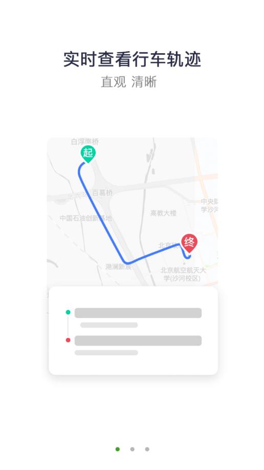行驶轨迹:显示车辆出行轨迹,包括起止地点、起止时间、轨迹、驾驶得分、驾驶行为