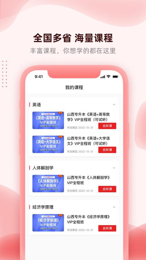 逗学专升本APP,为山西、山东、河南、江苏、广东、浙江、河北等全国25个省市统招专升本、专转本考生提供录播课、直播课等在线课程学习;