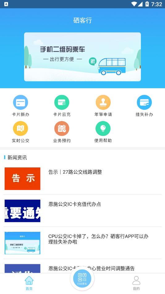 硒客行app是专为恩施制作的一款掌上公交应用,软件可以帮助用户手机一键扫码乘车,并还拥有实时公交,挂失补办等等功能,需要的朋友欢迎前来下载使用。