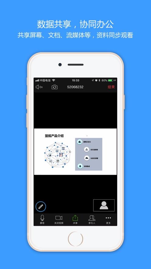 网络在线视频会议:盟畅云会议可以让您在有网络覆盖的地方与同事或客户即时连线,开启一场视频会议,让沟通变得及时而有效。