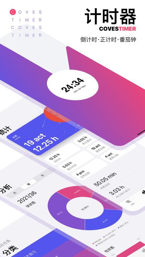 coves 计时器为学习工作计时器软件,帮助你时间管理更好的完成待办清单。