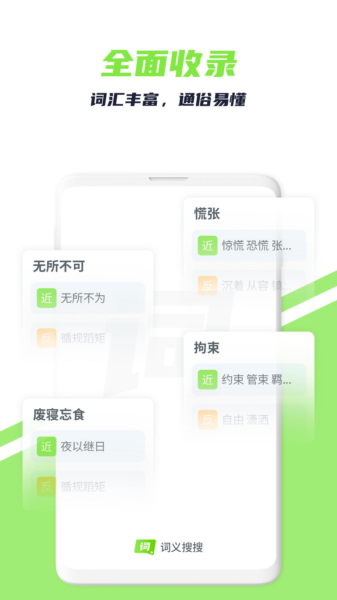 词义搜搜app是一款由成都星悦天成科技有限公司打造的搜索工具,一键搜索,帮助用户快速查询词语内容,词汇丰富,通俗易懂,有需要的朋友可以来下载。