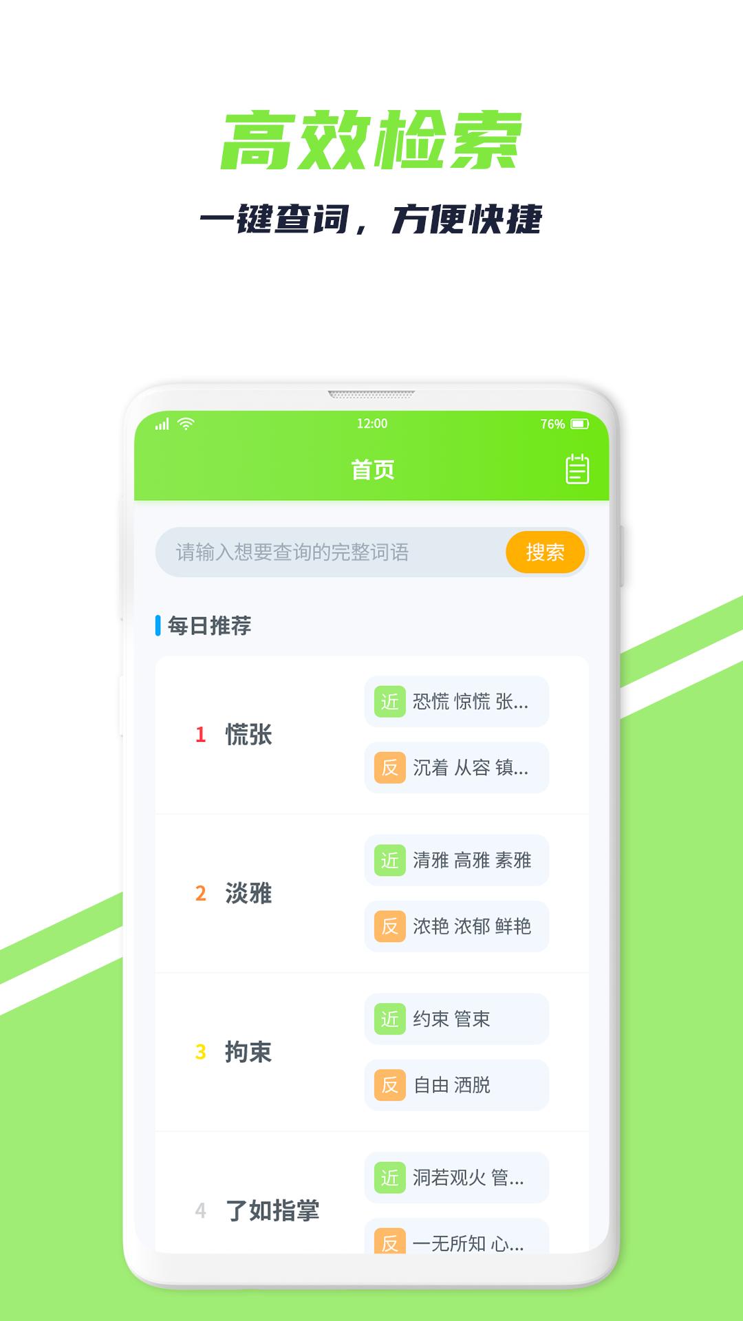 词义搜搜是一款学习近义词和反义词的搜索工具,能帮助你快速查询和掌握词语知识,让学习更轻松。