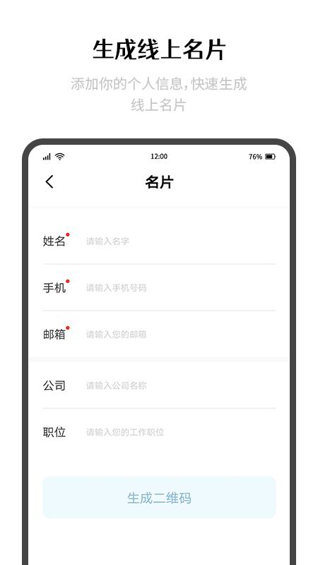提供文本、网页、名片、WIFI的二维码生成功能,便于用户间的快速传播和交流。