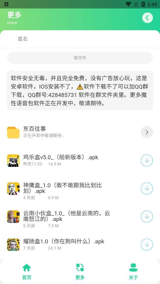 老八音盒app是一款非常有趣的语音包软件。软件为用户提供了老八的经典语音包,用户可以在这里随时进行播放,非常的有趣,还可以用作聊天变音,快来下载体验吧。