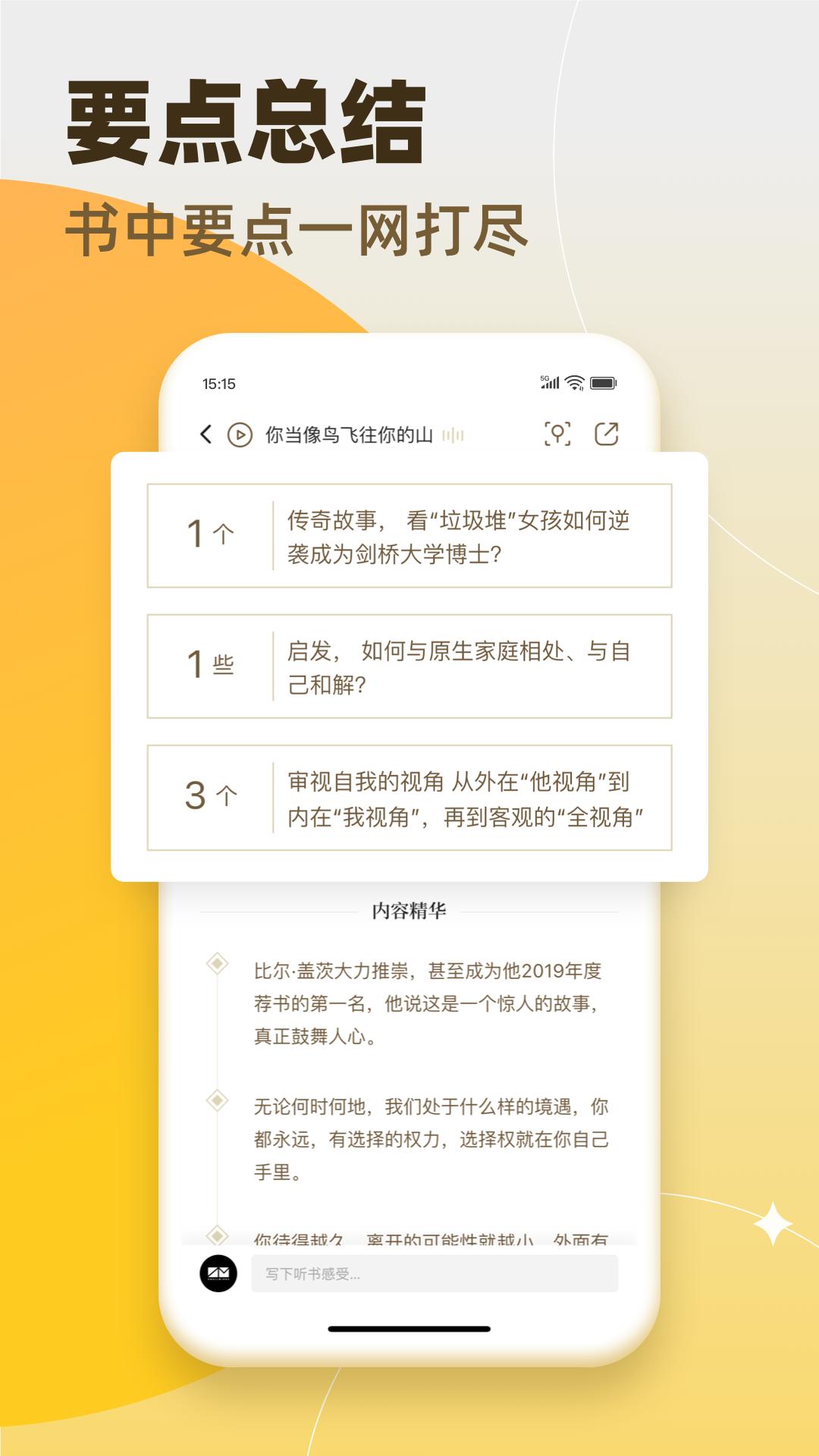 你可以快速选到想听的书;「你将收获」、「内容精华」等栏目是我们总结出来书中的好点、精点、要点;你也可以在「资料清单」中找到我们精心整理的和书相关的资料;「测一测」也可以更好的帮你理解书中的知识;