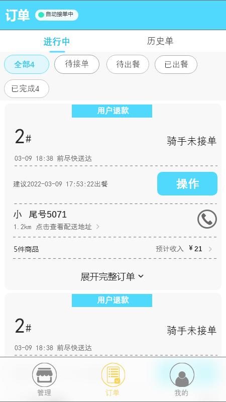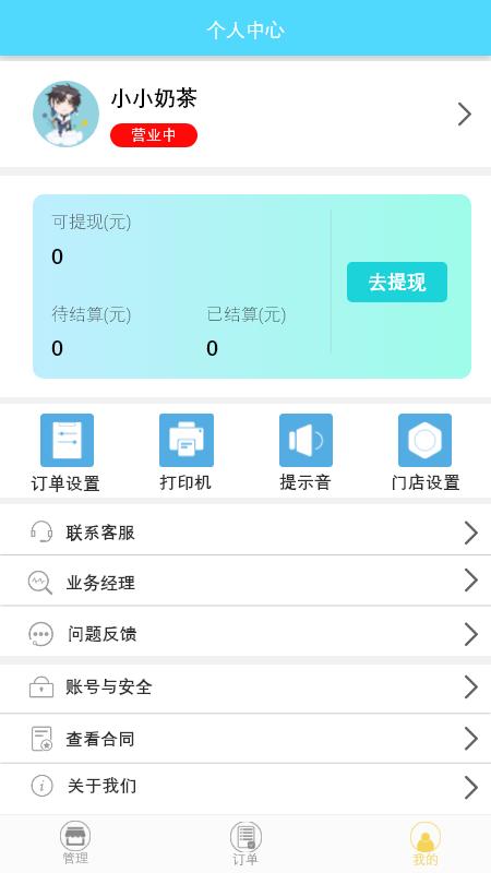 主要功能是接受并处理用户订单,处理退款退单,账户一键结算,上下架商品以及查看库存,管理门店,随时调整营业时间。