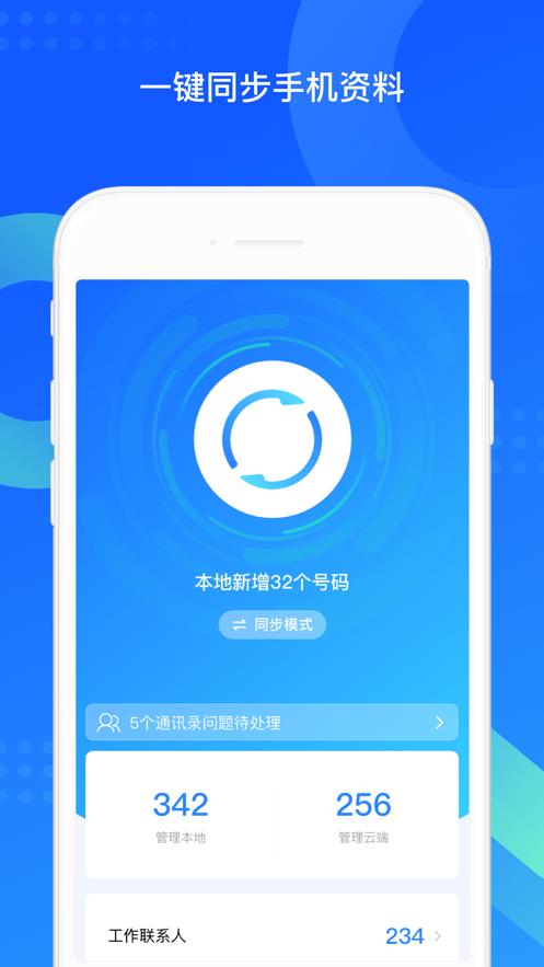 备份管理:手机通讯录一键备份至网络,随时同步回手机