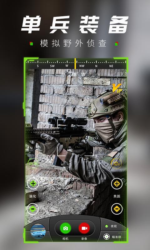 提供多种不同的好玩的镜头,狙击,坦克,拍照录像增加更多军事战争乐趣,后续还会增加更多的内容