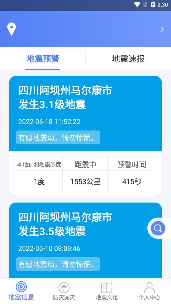 四川地震预警(紧急地震信息)是一款非常实用的地震预警软件。软件专为四川省及其周边地区服务,为用户提供了较为准确的地震预警和速报功能,让用户第一时间知晓地震,更好的进行防震减灾,还能在这里了解各种地震资讯,非常的实用。