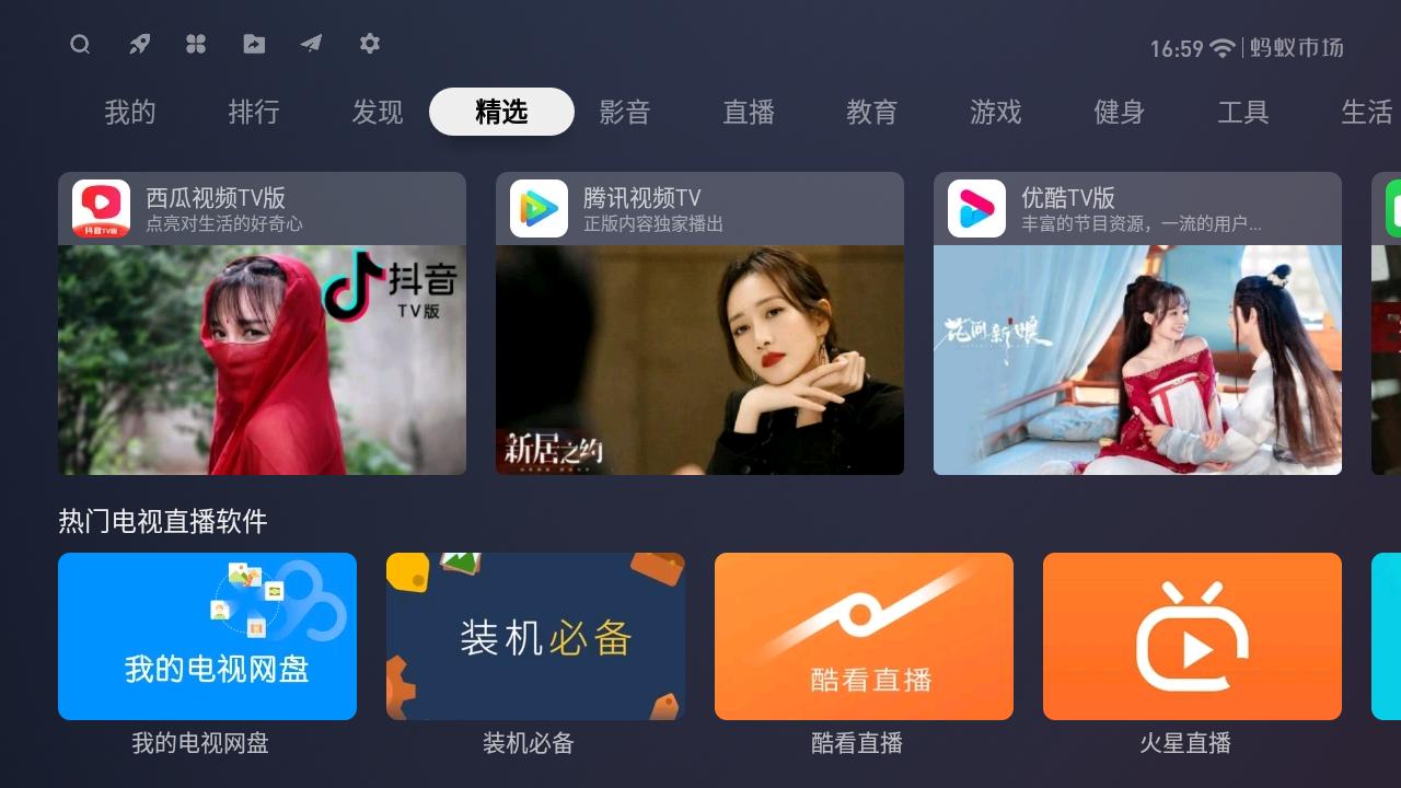 第二步:将U盘接入电视的USB接口上,将蚂蚁市场安装到电视上,打开并运行;
