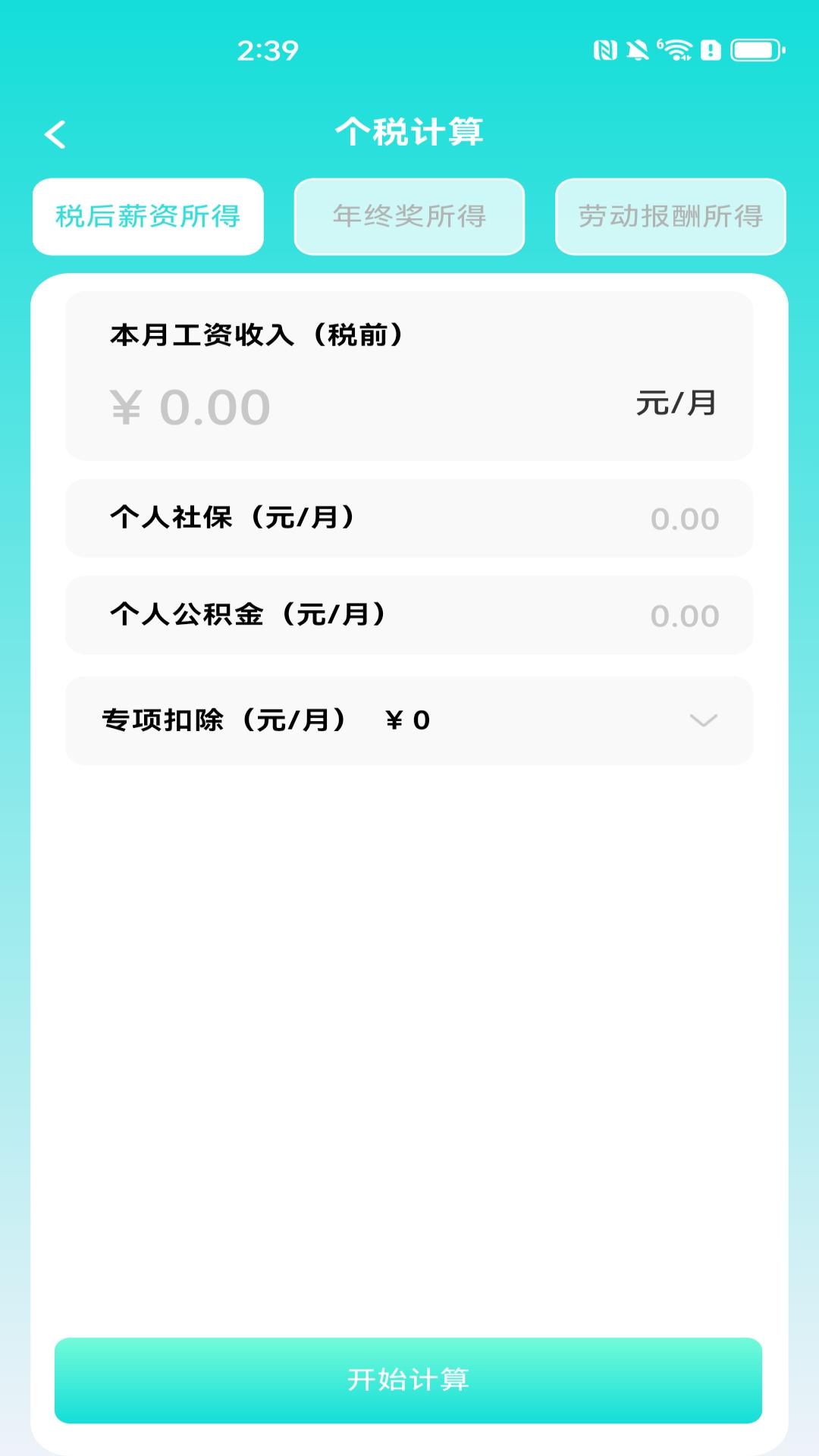 2、点击首页“个税计算”进入页面