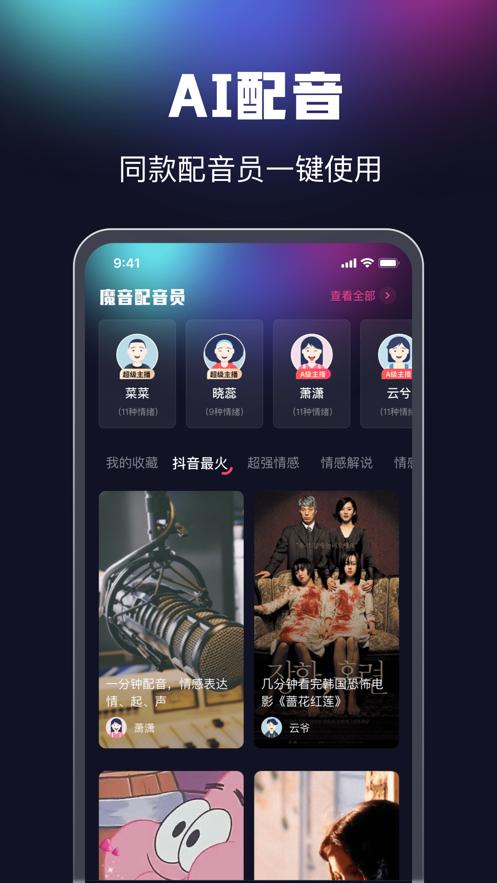 魔音配音是一款文字转语音的专业语音合成助手配音软件,100多个抖音热门发音人,高拟真度发音,抑扬顿挫。发音人可选不同说话风格。