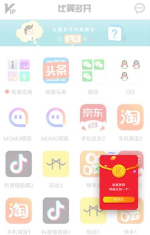 比翼双开支持一键双开微信、qq、淘宝、陌陌、微博等几乎所有APP应用,满足客户更多需求。