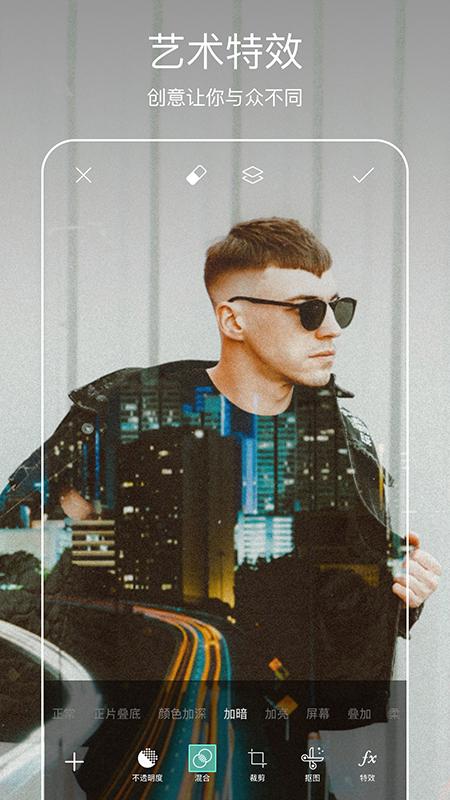 3、新奇的双重曝光功能。全能修图、编辑、边框、马赛克、超多美化功能。