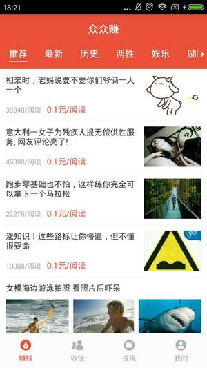 2、在众众赚app上阅读下载,并分享里面的优质文章即可在打发时间的同时赚钱。