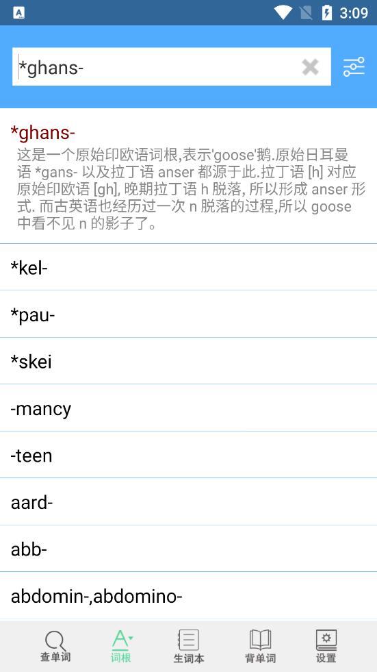 6、词根词缀相当于汉字的偏旁部首,记住常用的词根词缀,可以让你的词汇量快速达到考研、托福、雅思、GRE的水平。APP目前总结两千多条词根,拆解了十万多条包含词根的单词;