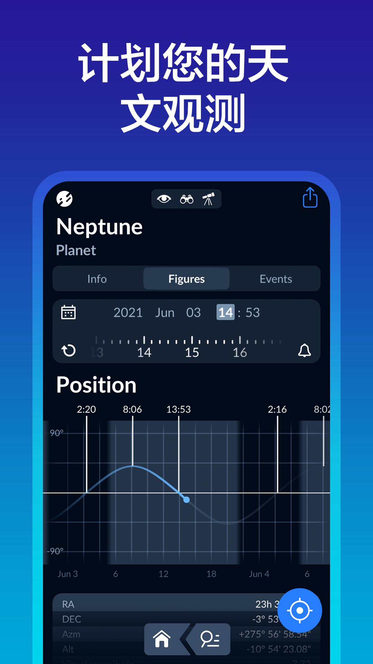 利用方便的搜索功能:快速找到您感兴趣的天体,轻松浏览不同的天体和事件类型。寻找“恒星”、“火星卫星”、“火星合相”、“日食”,该应用将向您展示所有相关的物体、事件和文章!