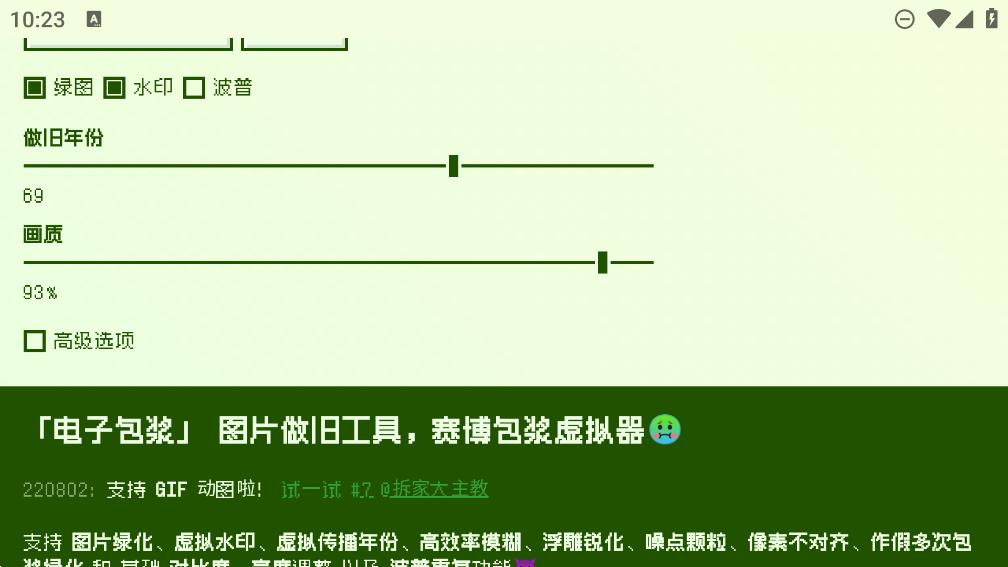 3、还有专门的功能电子包浆,让你的表情包更有质感。