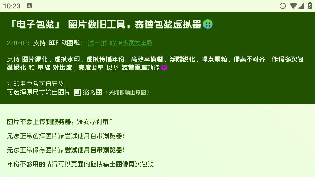 神器海螺试验场App安卓版是款抖音上超级火的一款给图片电子包浆的App,这款App能让你的图片变的更有味道,而且用起来也是十分的方便,能够随意的调节。