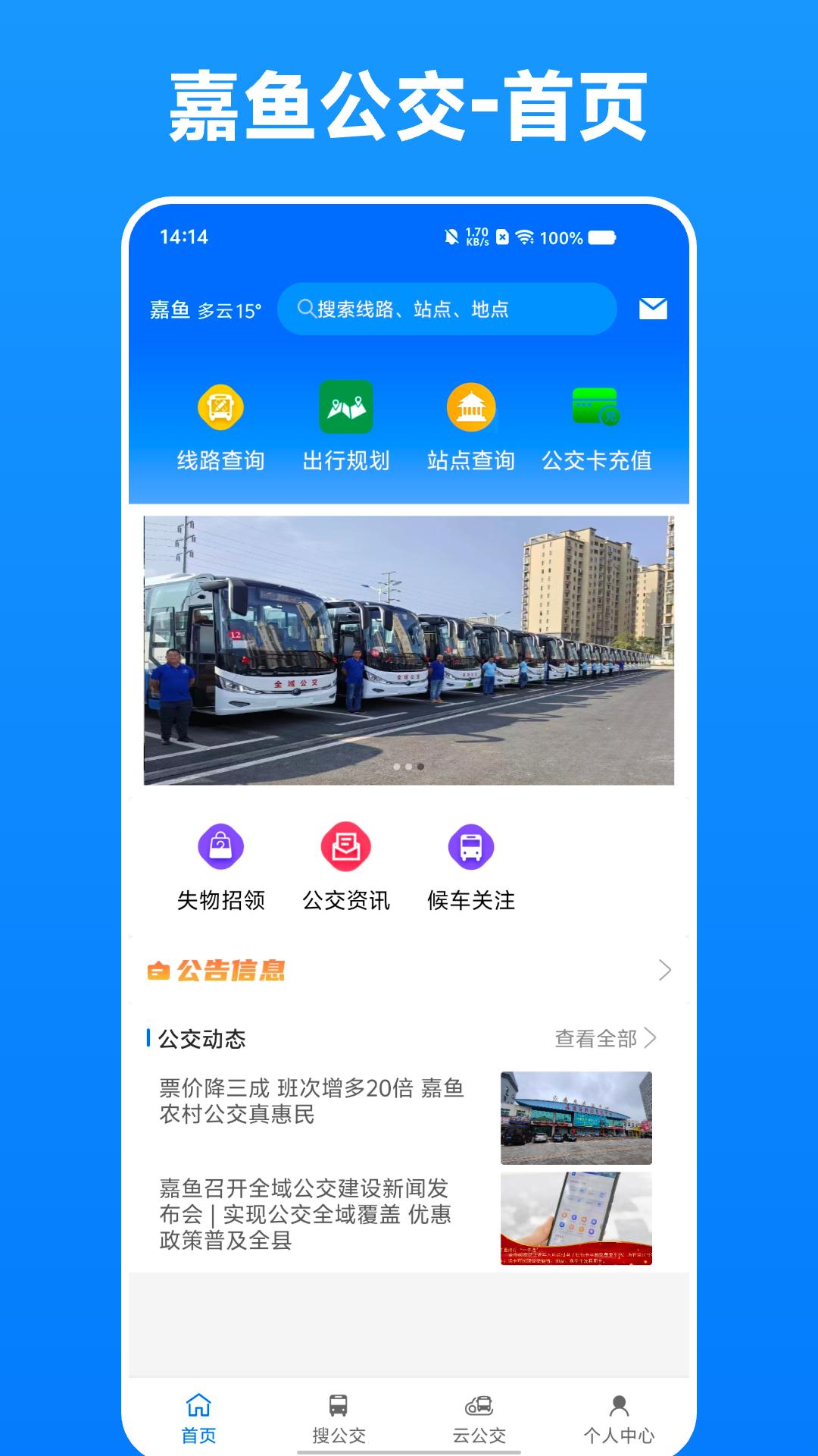 嘉鱼掌上公交app是专为嘉鱼制作的一款智慧公交助手,软件拥有线路查询,出行规划,站点查询,公交卡充值,失物招领,公交资讯等等丰富功能,可以帮助用户更智慧高效嘉鱼公交出行,需要的朋友欢迎前来下载使用。
