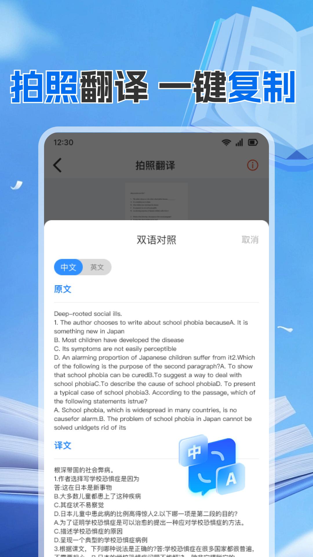 还能翻译各种英文单词、句子和课文,以后不认识的英文都可以快速翻译;