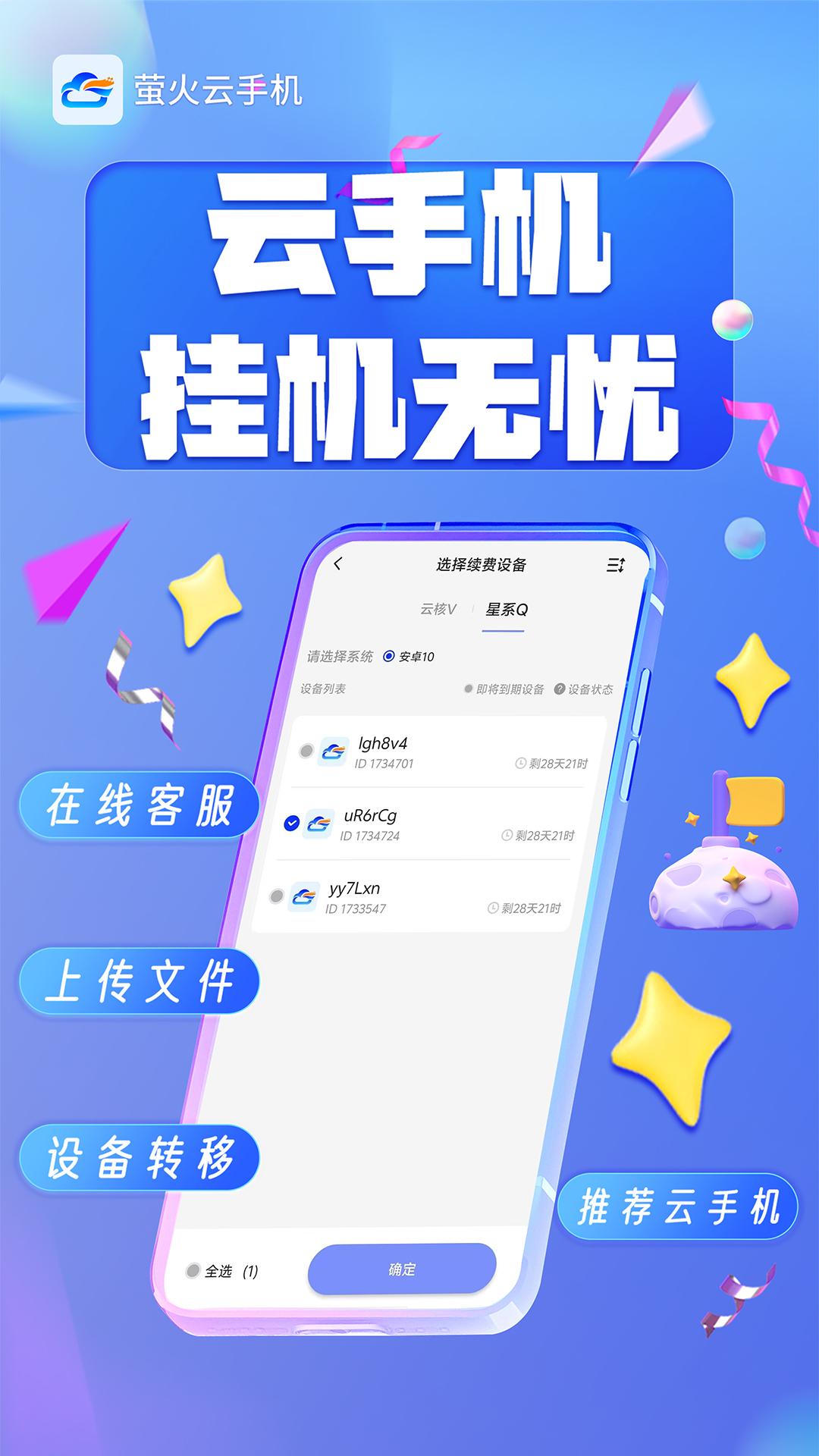 萤火云手机APP最新版本是杭州鹿萤科技有限公司倾情推出的一款云手机应用,软件拥有多款配置,拥有强劲的性能,可以帮助用户更好的使用云手机进行游戏,办公等等,觉得不错的朋友欢迎前来下载使用。