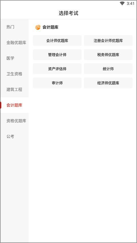 1、打开优题库app,自主选择考试类型。