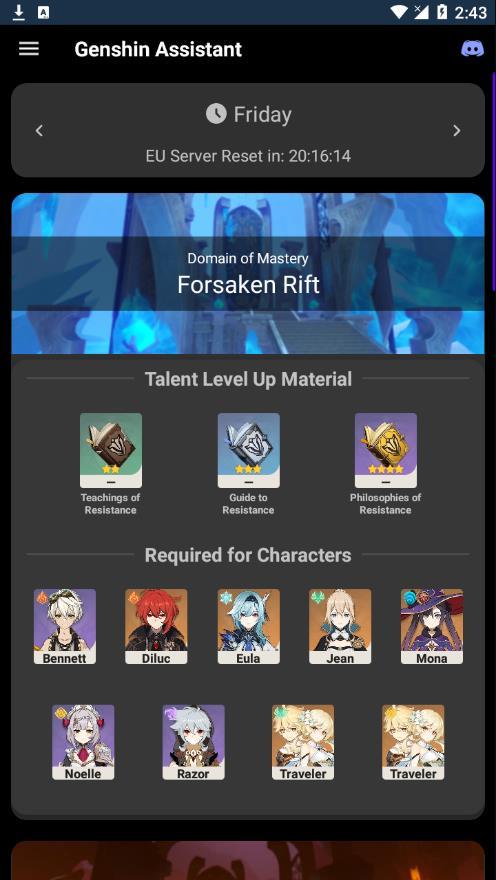 Genshin Assistant app为玩家带来更多的游戏辅助,让玩家玩游戏更加的轻松,软件可以帮助玩家追踪每日树脂的刷新,还有各种活动和任务的追踪,帮助玩家更好的记住各种活动的时间,还有许多的角色攻略可以随时查看。