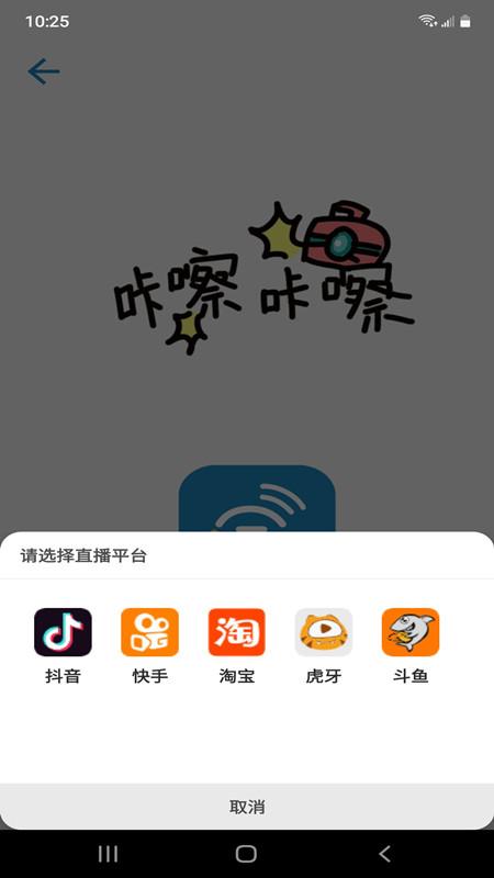 在APP直播界面中,可以选择直播平台:抖音、快手、淘宝、虎牙、斗鱼等。