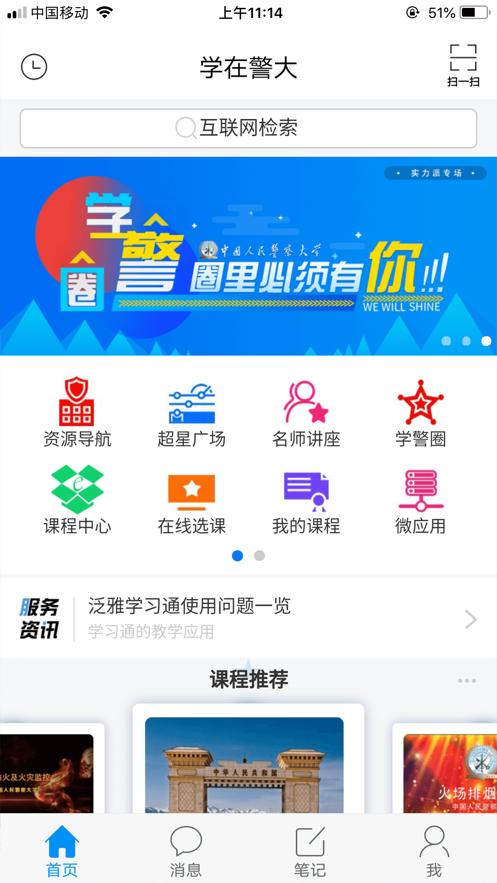 学在警大app是专为中国人民警察大学师生制作,软件拥有在线学习,消息,笔记等等功能板块,可以帮助师生更好的校园教育学习,需要的朋友欢迎前来下载使用。