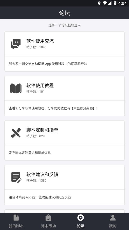 自动精灵app是一款自动化脚本工具,软件拥有我的脚本,脚本市场,论坛等等功能板块,可以帮助用户更好的解放双手,需要的朋友欢迎前来下载使用。