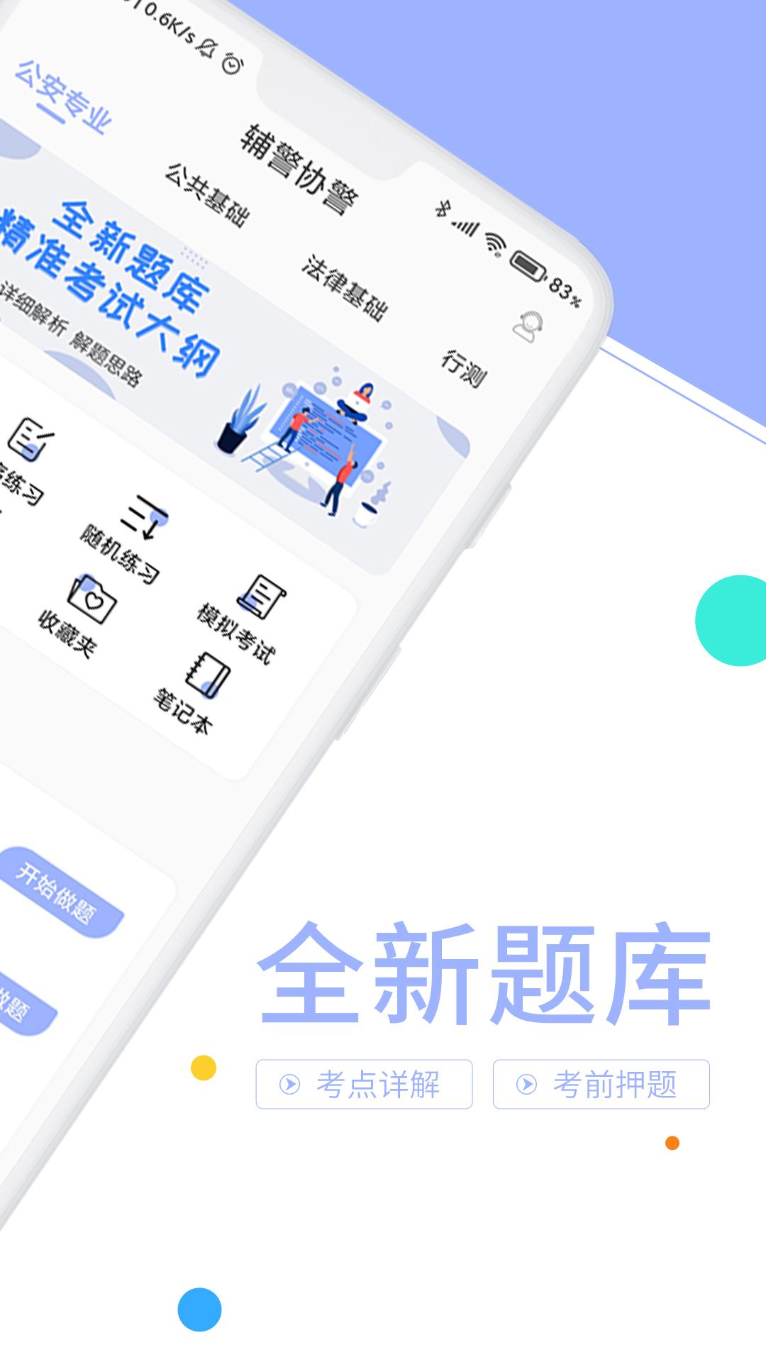 有模拟考场、历年真题练习、每日一练、快速练习、考点练习、考试押题、做题记录等多种学习与做题模式、丰富多样化的陪你一起考辅警。