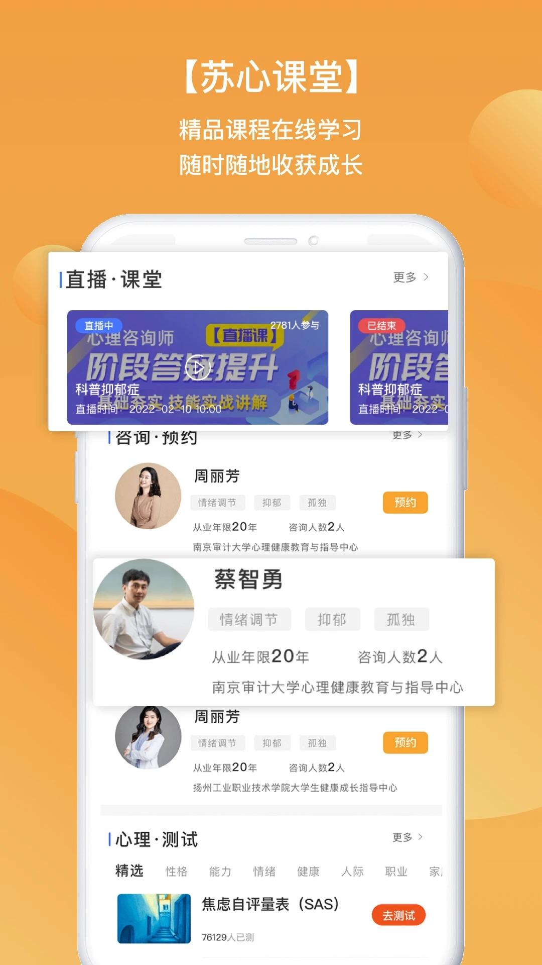 苏心app是一款校园心理服务平台,平台拥有心理咨询,苏心社区,苏心课堂,心理测试等等功能服务,可以帮助大学生更好的心理健康。